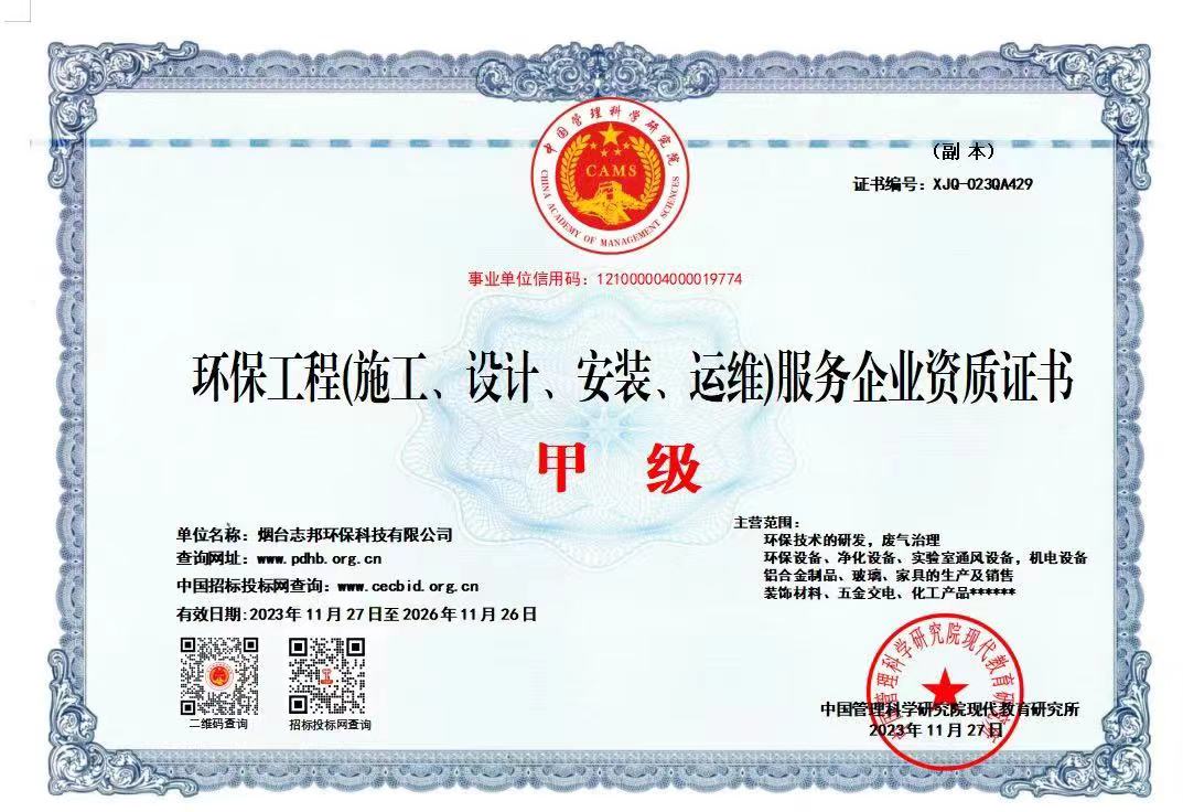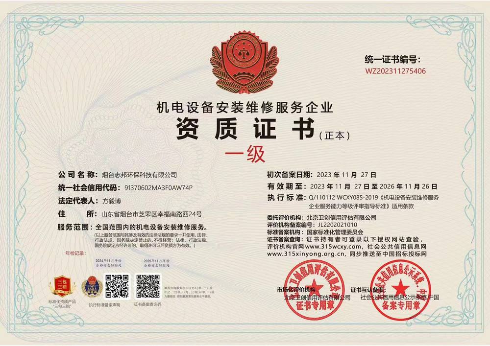 環(huán)保工程(施工、設(shè)計、安裝、運(yùn)維)服務(wù)企業(yè)資質(zhì)證書